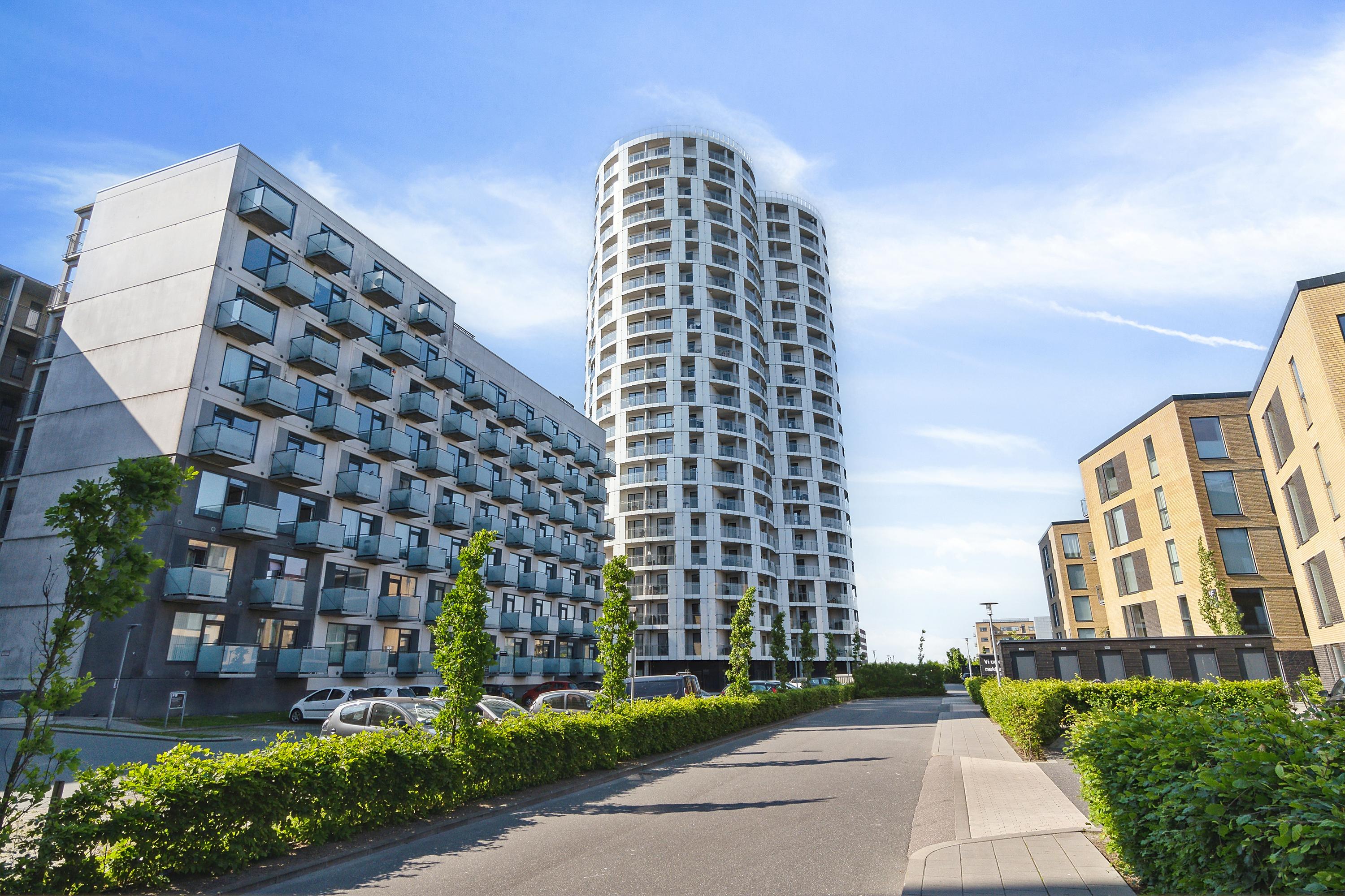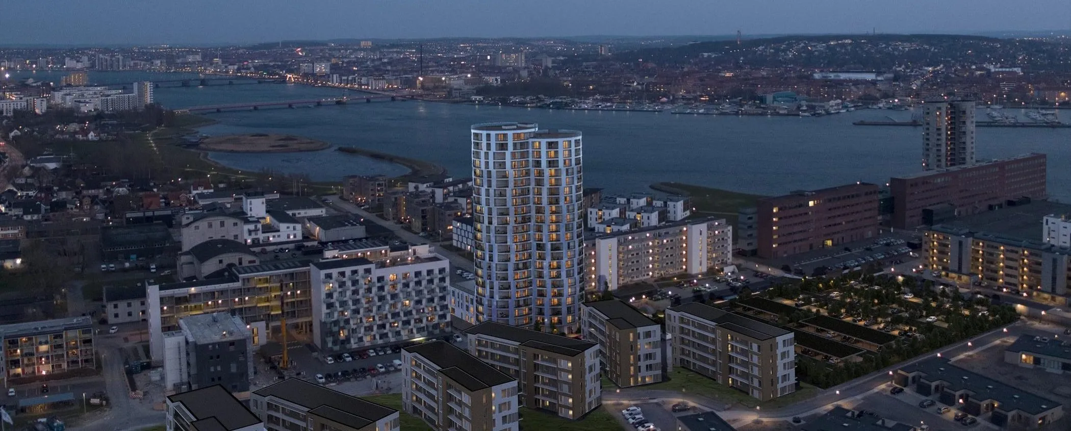The highest building in Aalborg. An approx. 70 m high building constructed from a trinity of pillars with the same architectural form as the old cement silos. When completed the building will have a gross floor area of approx. 18.000 m², and the building will house 166 apartments as well as a café.
