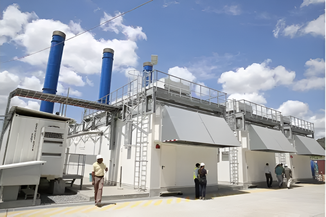The power plant consists of three genset buildings including genset foundations as well as concrete structures for three stacks, containers, generators, transformers, gas filters and other minor equipment.