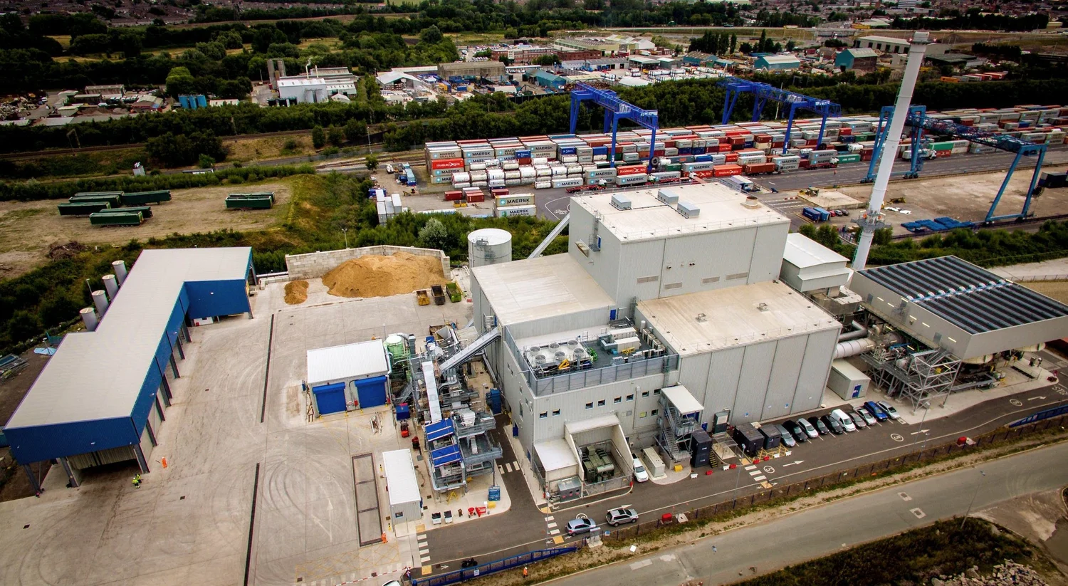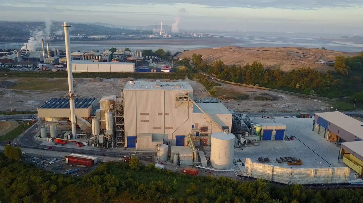 The power plant is located on a green field site located adjacent to the Mersey river between Liverpool and Manchester.